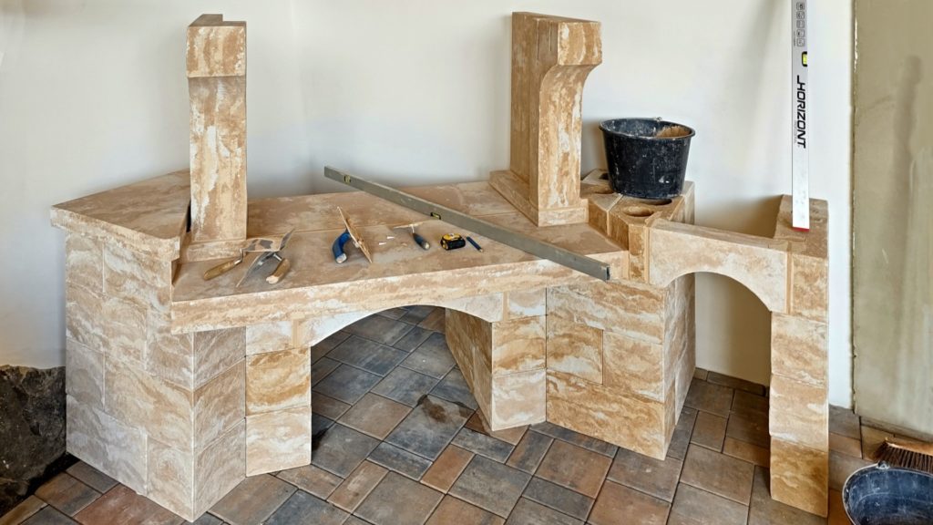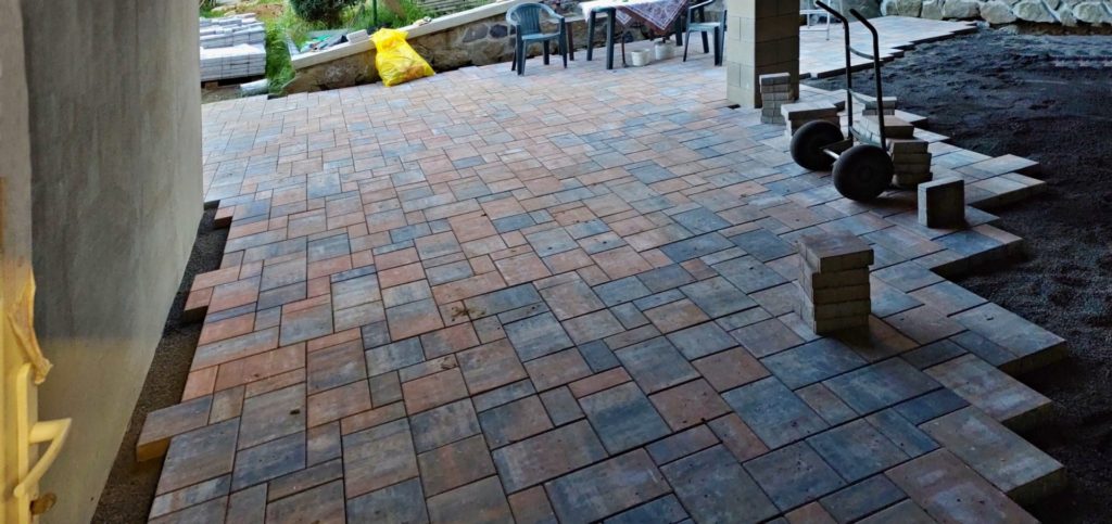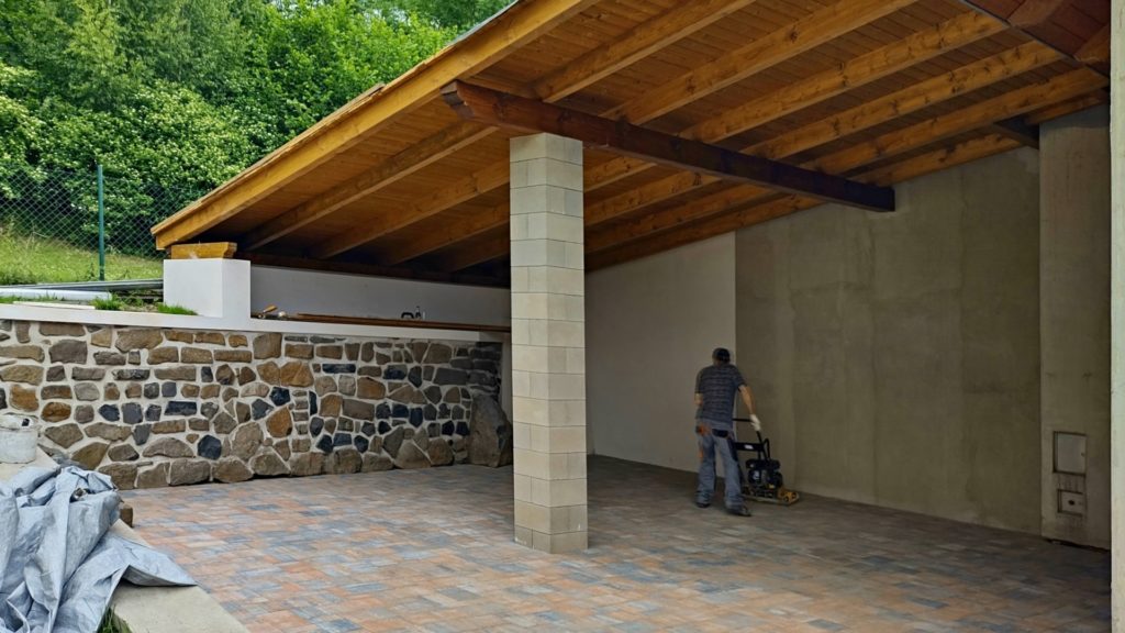 Zdění, betonování, zhotovení omítky, fasády, sádrokartonů, položení dlažby a obkladů, venkovní zámkové betonové nebo kamenné dlažby.